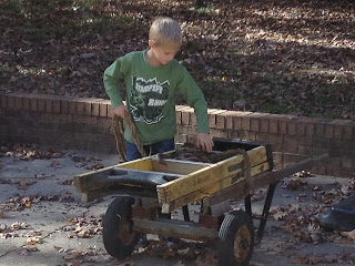 Who needs toys when they have a cart, ladder, pulley, and imagination?